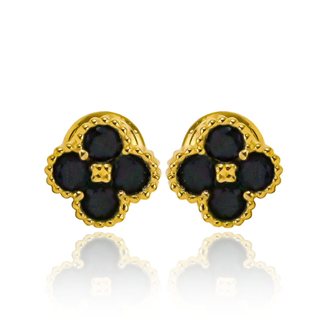 Estos Topitos trébol 4 hojas M Black están hechos con oro de 18k de Joyería Caracas. Su diseño exclusivo y elegante, inspirado en un trébol de 4 hojas te hará destacar en cualquier ocasión. Una pieza de alta calidad que refleja tu buen gusto y suerte. Perfectos para aquellos que buscan lo mejor en joyería de lujo.